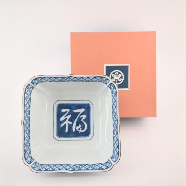 > 未使用品】たち吉 角鉢 青華遊魚 青華遊魚 箱付 208-024 和食器 染付 角 盛鉢 大鉢 深鉢 鉢 深皿 呉須 橘吉 ◆2005