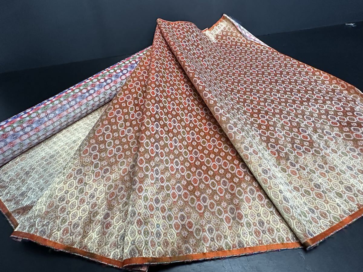 - [B974] 反物 金襴華紋 約72×800cm 正絹 仏壇 寺院 仏教 仏具 法衣 古布 打敷 袈裟 金糸 小紋 金襴