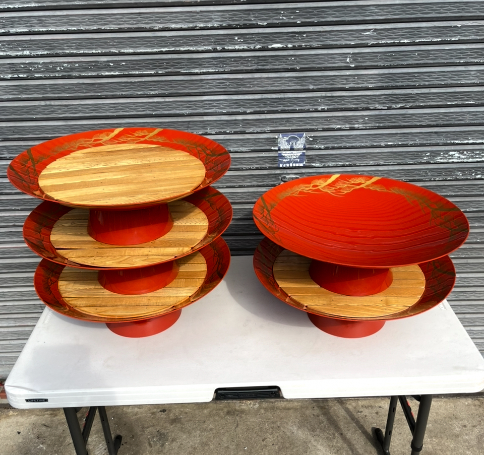 - 盛器 大盃膳 朱塗り 回転式大皿 直径54cm 木製目皿付 和食器 刺身盛り 魚 盃型盛器 お造り 天ぷら プラ製 5個セット