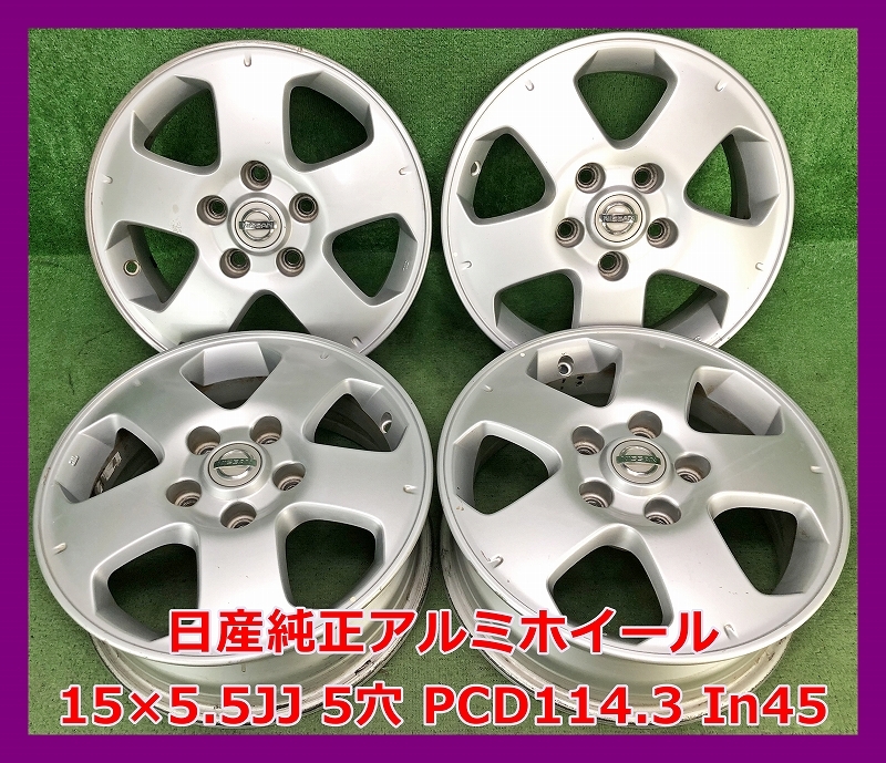 - ★15インチ 日産 純正 中古 アルミホイール 4本 5穴 PCD:114.3 IN45★