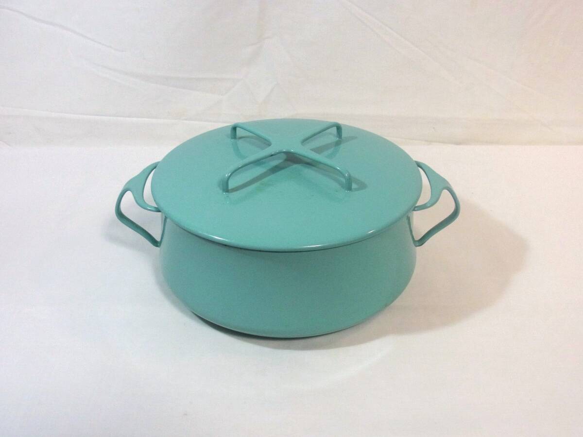 - USED ビンテージ ダンスク DANSK デンマーク 鋳物 ホーロー 両手鍋 料理道具 水色 使用感 小キズ有