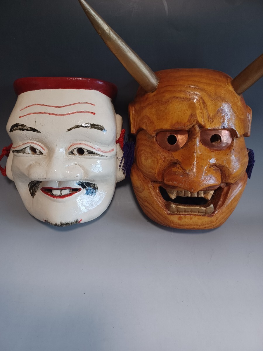- No.28 コレクター放出品 般若面 お面 魔除け 木彫り 木彫り面 能面 神楽 細密彫刻 木工芸 箱なし 和風インテリア