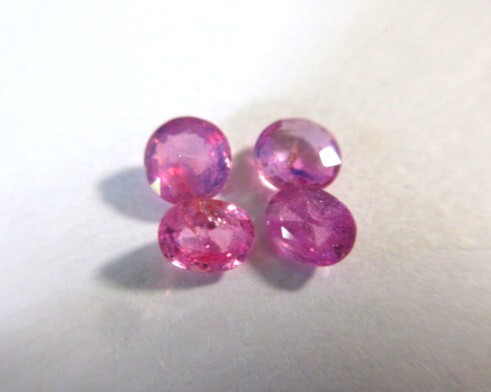明るいピンクや紫味のあるピンク、少しずつ色味の違うピンク・サファイアです。インクルージョンがありますが、透明感とテリがあります。非加熱。