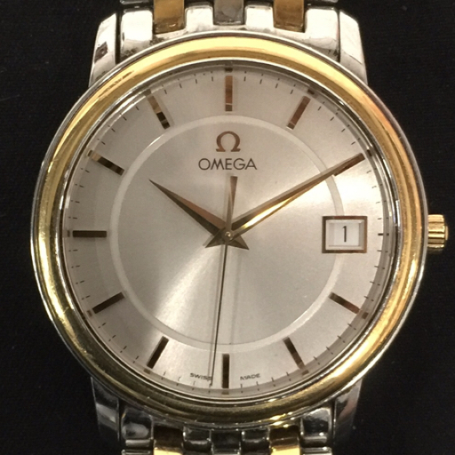 - 1円 オメガ デヴィル プレステージ コンビ クォーツ 腕時計 メンズ シルバーカラー文字盤 未稼働 純正ブレス OMEGA