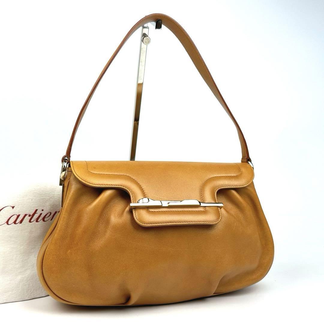 > 極美品 カルティエ パンテール ハンドバッグ ショルダーバッグ ロゴ ゴールド金具 裏地総柄 パンサー パーティ 肩掛け レザー 希少 レア