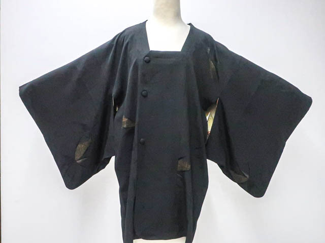 > 《古美術京松》【着物】アンティーク 道行コート 金糸 花文 身丈約86.5cm 裄丈約62cm kyo7z05-480