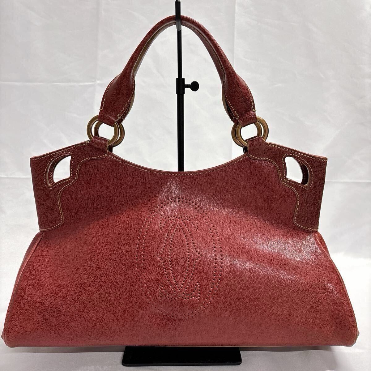 - 美品!Cartier カルティエ マルチェロ ハンドバッグ バッグ C2ロゴ レッド 赤 レザー レディース【1281】