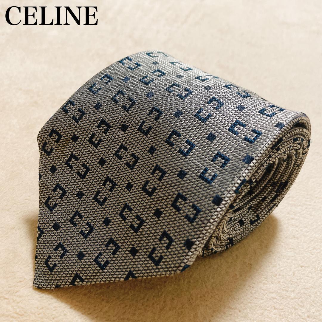 > CELINE セリーヌ ネクタイ シルク100% スペイン製 高級感 グレー ロゴ エレガント ビジネス スーツ フォーマル 光沢 パーティー 4-47