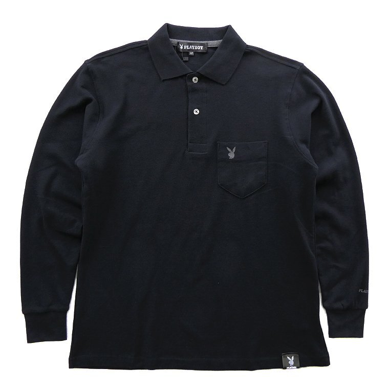 - 新品 プレイボーイ 25年秋冬 コットン 長袖 ポロシャツ L 黒【PB1953038_99_L】PLAYBOY コットン ロゴ バニー カノコ スポーツ ゴルフ