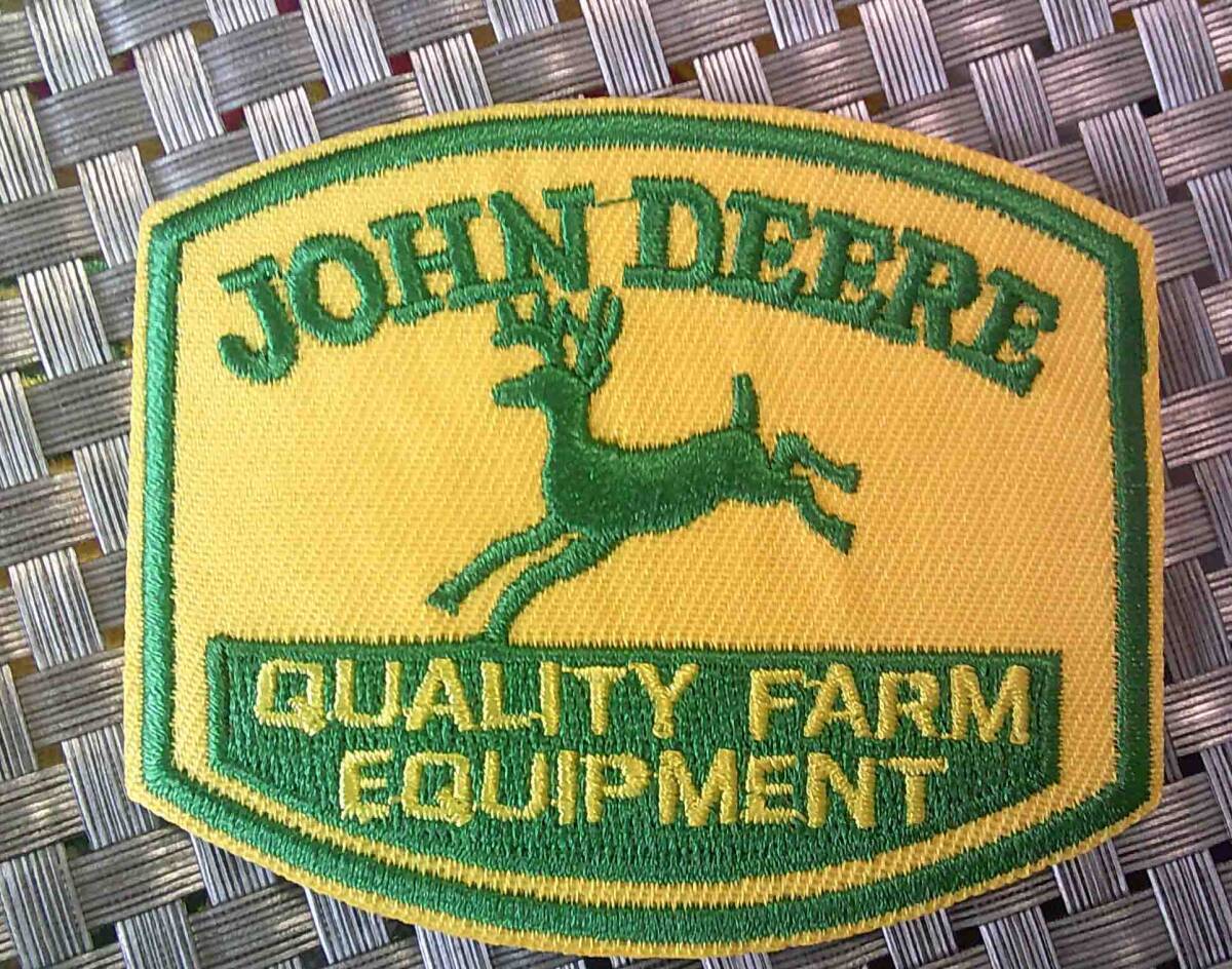 > 《黄緑JD跳鹿》■四角角丸◎激渋◆ 鹿 John Deere ジョンディア ジョン・ディア 刺繍ワッペン◆アメリカ ■農業 トラクター■衣服DIY