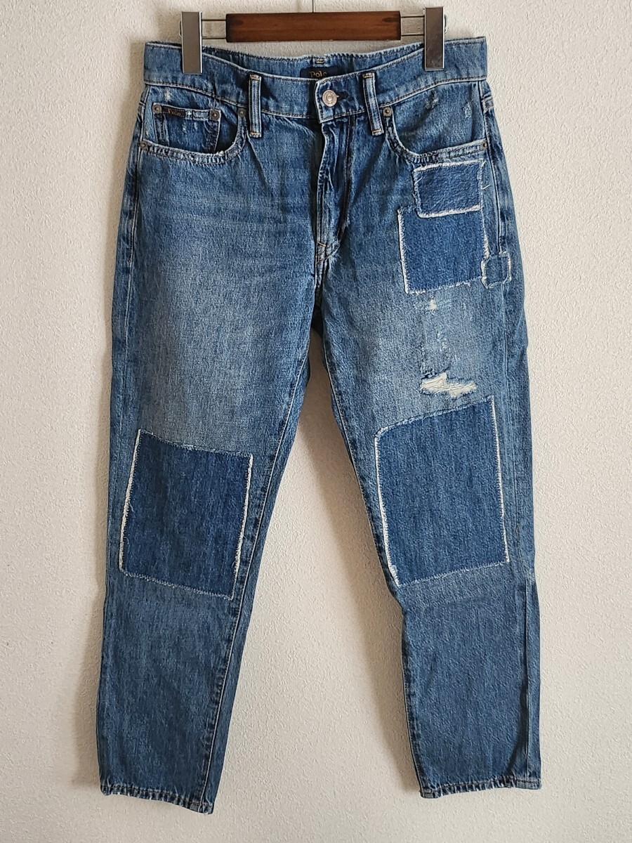 > 【kids.youth】ポロラルフローレンデニムパンツ刺繍ポニーダメージリペア加工
