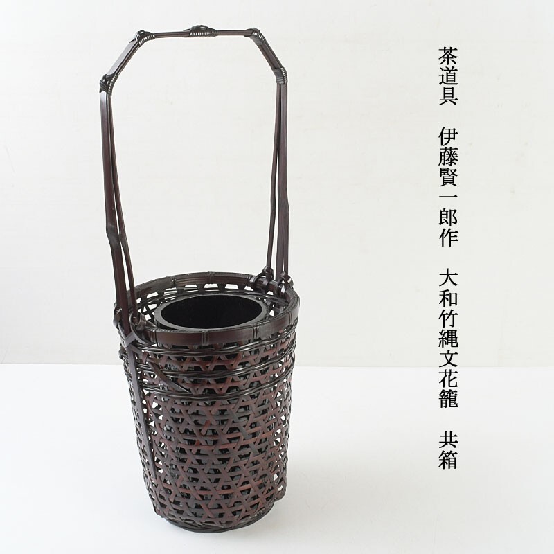 - 茶道具 伊藤賢一郎作 大和竹縄文花籠 共箱 AXZT