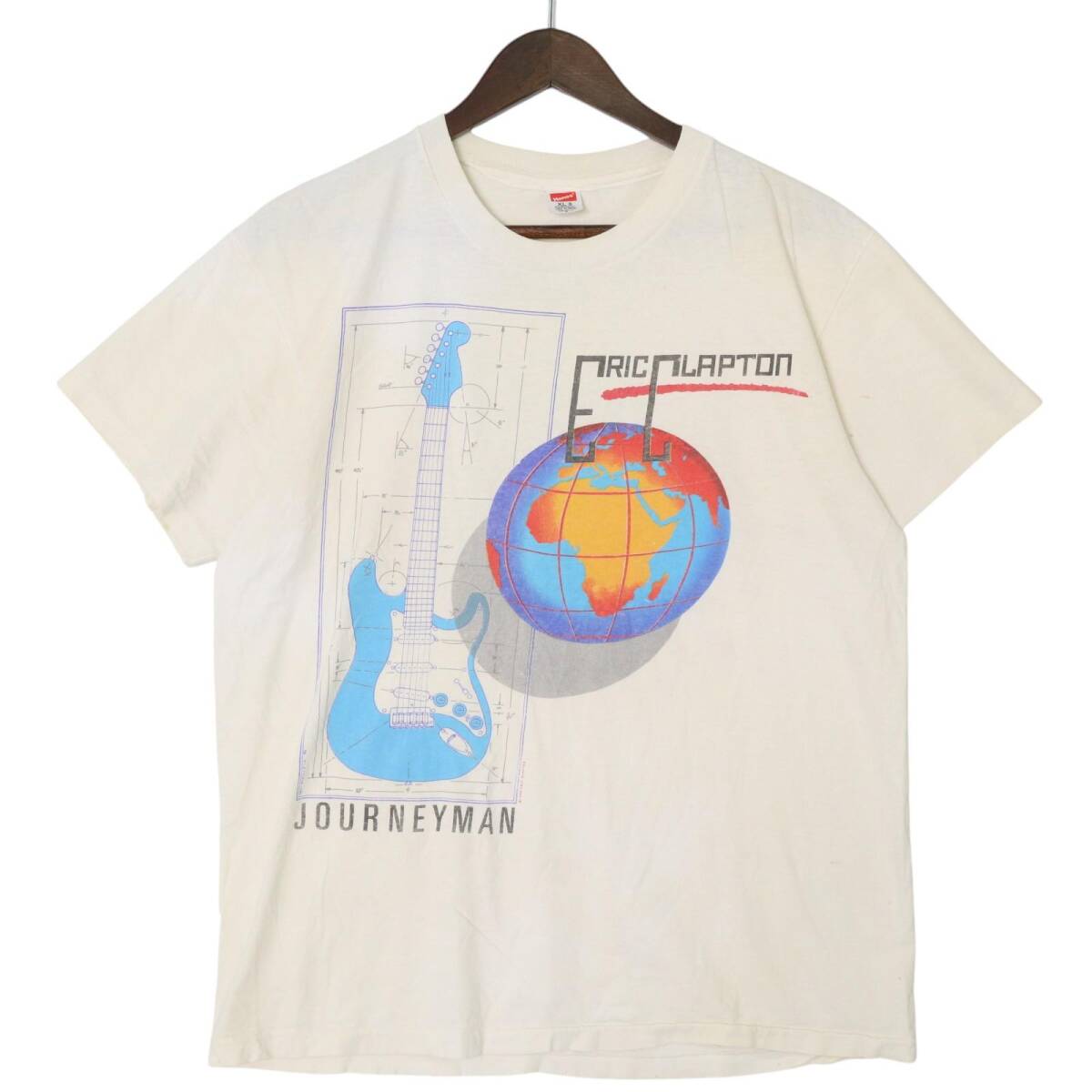 > 90年代 USA製 ERIC CLAPTON エリック・クラプトン Journeyman 半袖Tシャツ ホワイト(メンズ XL)中古 古着 A5038