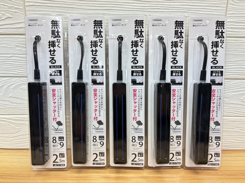- A841 YAZAWA ヤザワ 5点セット 無駄なく挿せる フリータップ 8〜9個口 2.5m BLACK 火災防止 延長コード H6LS10025BK 引っ越し 新生活