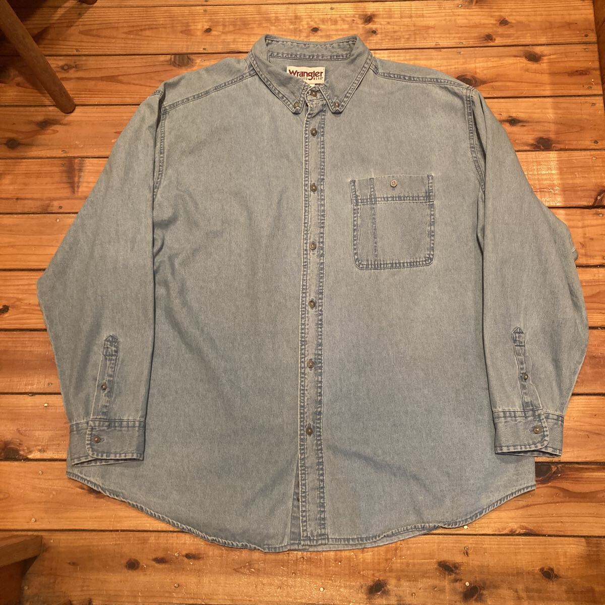 - Wrangler ラングラー デニムシャツ ダンガリーシャツ ボタンダウンシャツ 3Xサイズ ビッグサイズ アメリカ古着 USA古着
