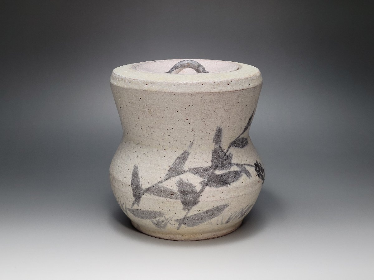 - 鼠志野絵付 白水指 在銘 高さ約17.7cm / 茶碗 茶道具 煎茶道具 茶器 陶瓷器 唐物 人間国宝 李朝 高麗 古玩 古董