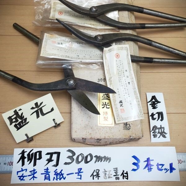 - 【アウトレット品】 輝 盛光 300㎜ 柳刃 金切鋏 安来鋼 青紙一号 保証書付 3本セット 薄金属板 トタン 板金工具 板金ハサミ sp-032-457