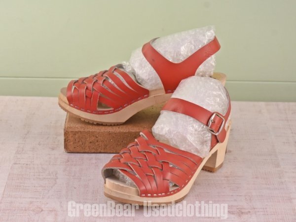 - D059 スウェーデン製 PIUKK ビンテージ サボ サンダル 赤 レディース 37 23.5cm