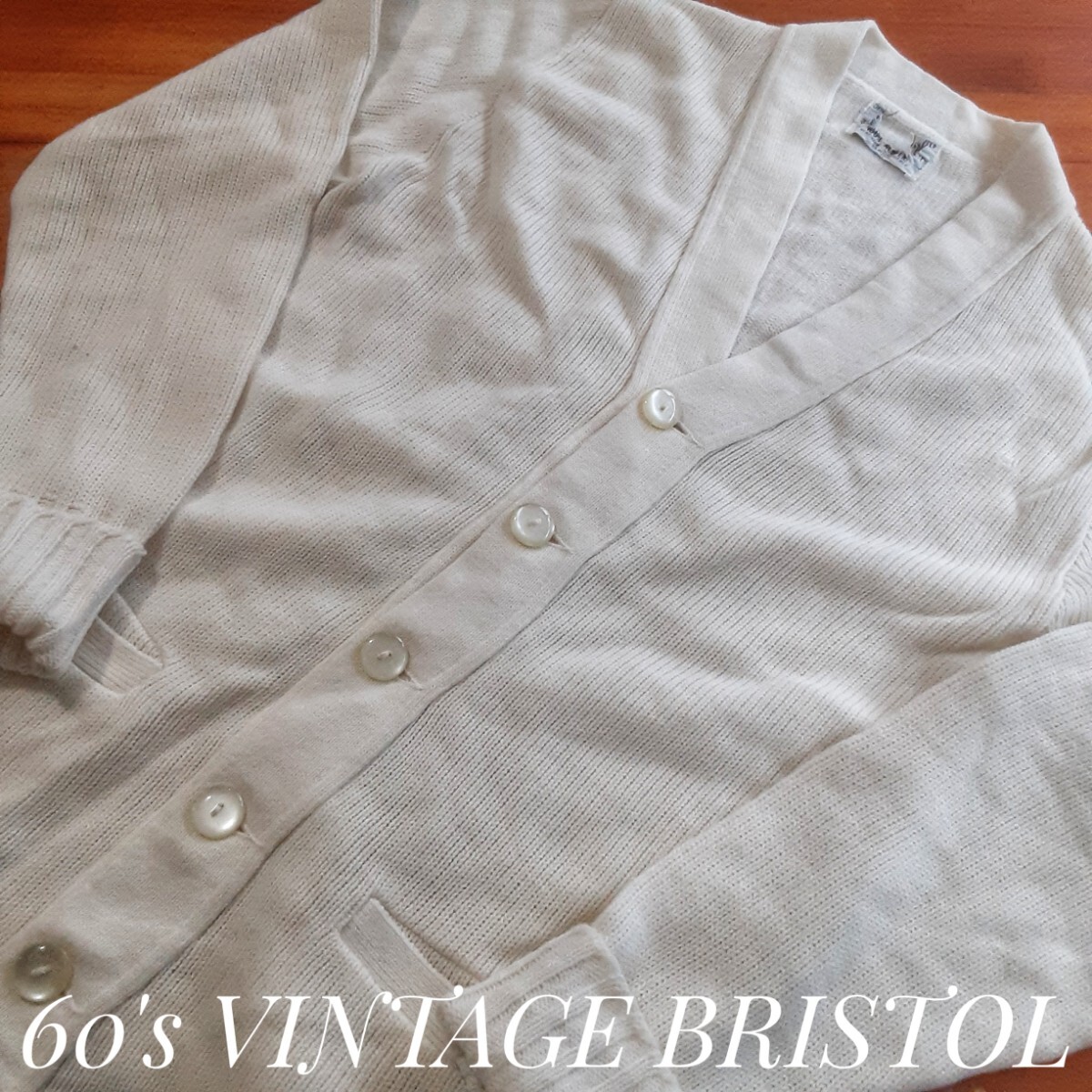 - 最値!60'sヴィンテージ!ブリストル(BRISTOL)プロダクツ ニット レタード カーディガン!生成りホワイト!白 Mサイズ相当
