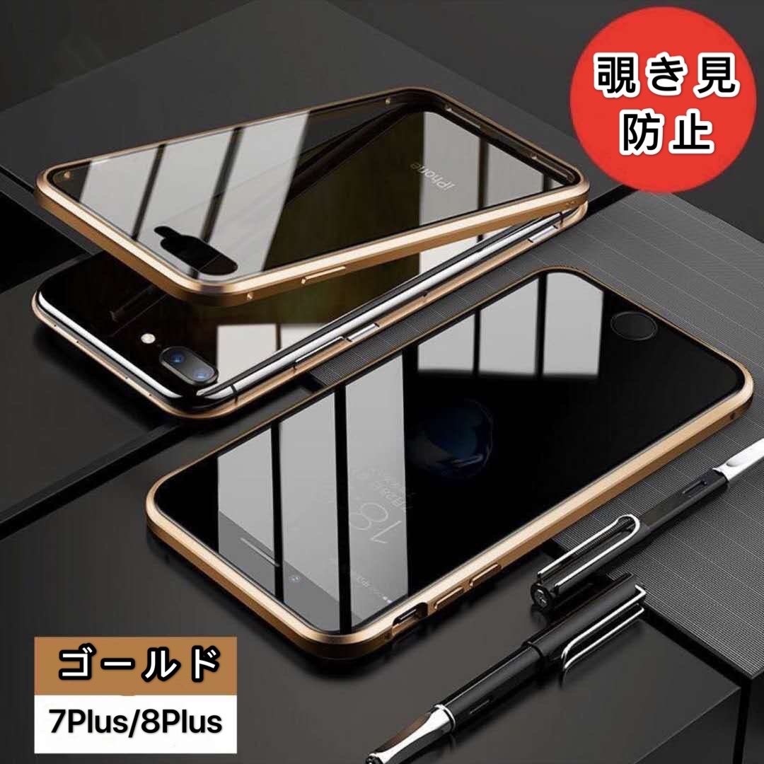 - iPhone7Plus/8Plus ゴールド 覗き防止 両面強化ガラス アルミ合金 磁気吸着 iPhone SE2 X XR XS 11 12 13 14 15 Pro max Plus ケース