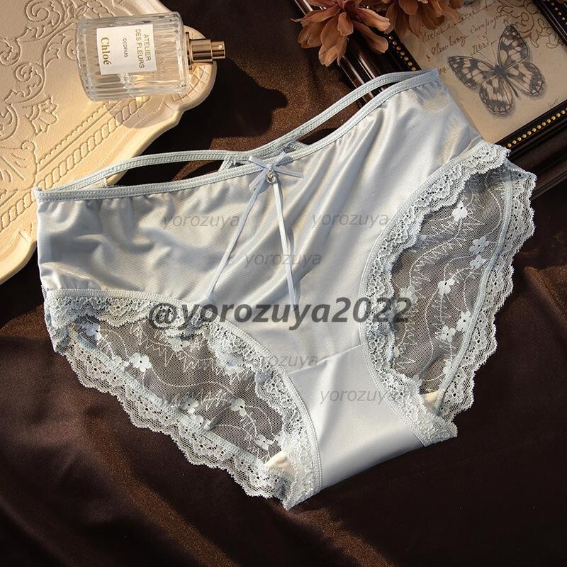 > 184-329-6 ツヤツヤ 光沢 ガーリー サテンレースパンティ【ブルー,XLサイズ】レディース 女性 下着 インナー 新品 ショーツ ブリーフ .1