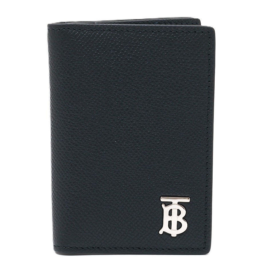 > BURBERRY バーバリー TBロゴ カードケース コンパクト 名刺入れ ウォレット レザー ブラック×シルバー金具 シンプル メンズ