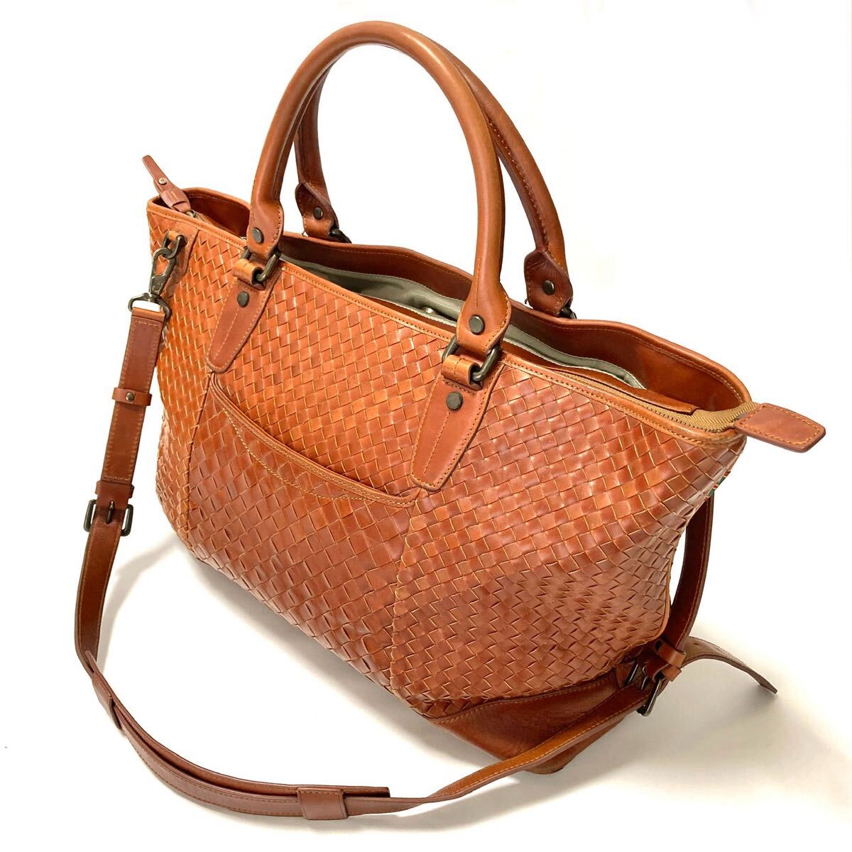 > NOLLEYS 本革オールレザーボストンバッグ イントレチャート 編み込み ブラウン 鞄 出張鞄 旅行バッグ ショルダーバッグ 2wayハンドバッグ茶