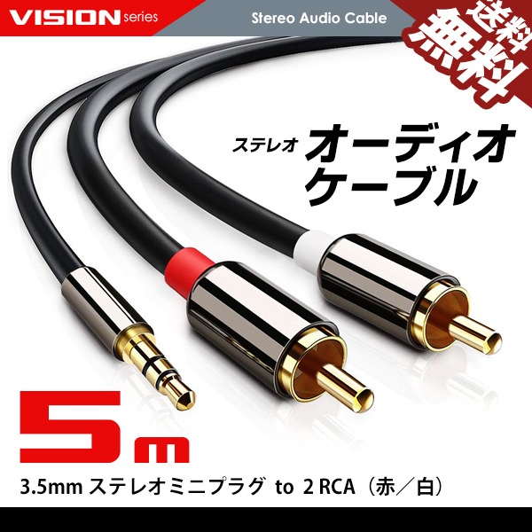 - オーディオケーブル 5m 3.5mm to 2RCA(赤/白)変換 金メッキ オス ステレオミニプラグ ネコポス 送料無料