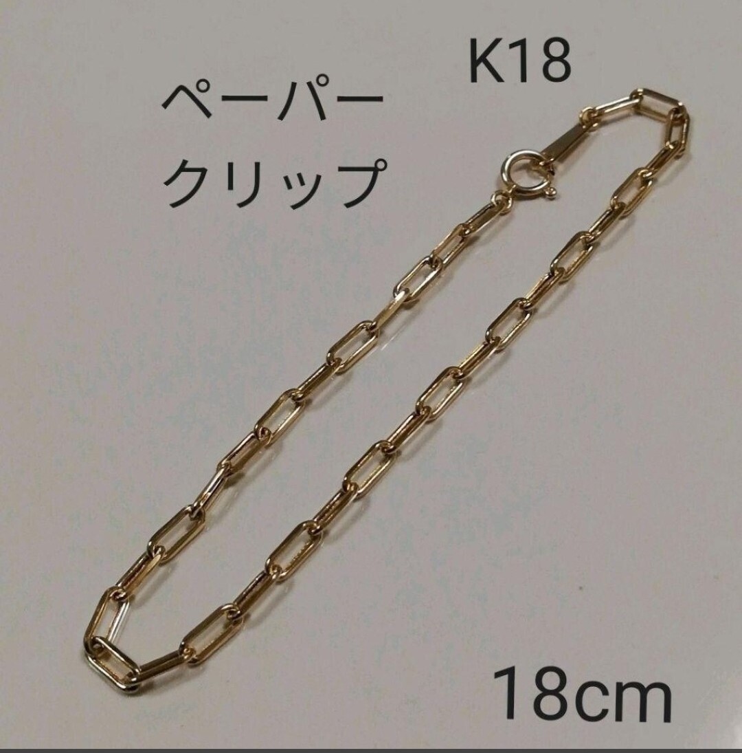 - 【最安値】K18 18金 18k YG ペーパークリップ ブレスレット 18cm イエローゴールド