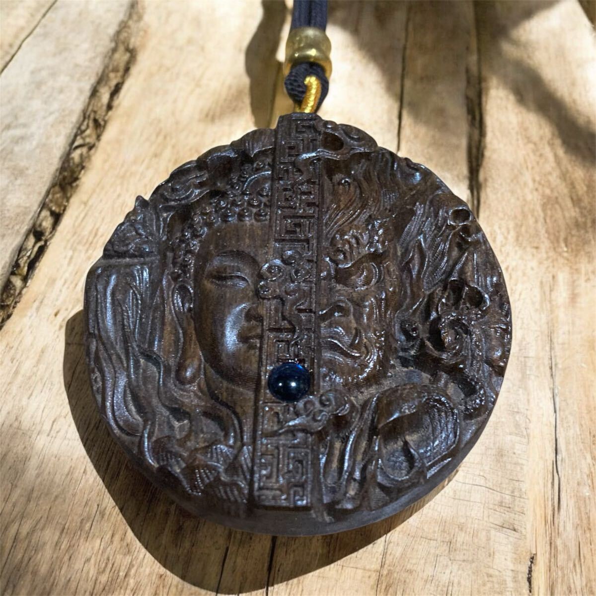 - 【木彫り】特大サイズ 仏陀 二面性 ネックレス 木製 高品質 重厚感 ペンダント 御守り 仏 明王 魔除け エスニック アジアン