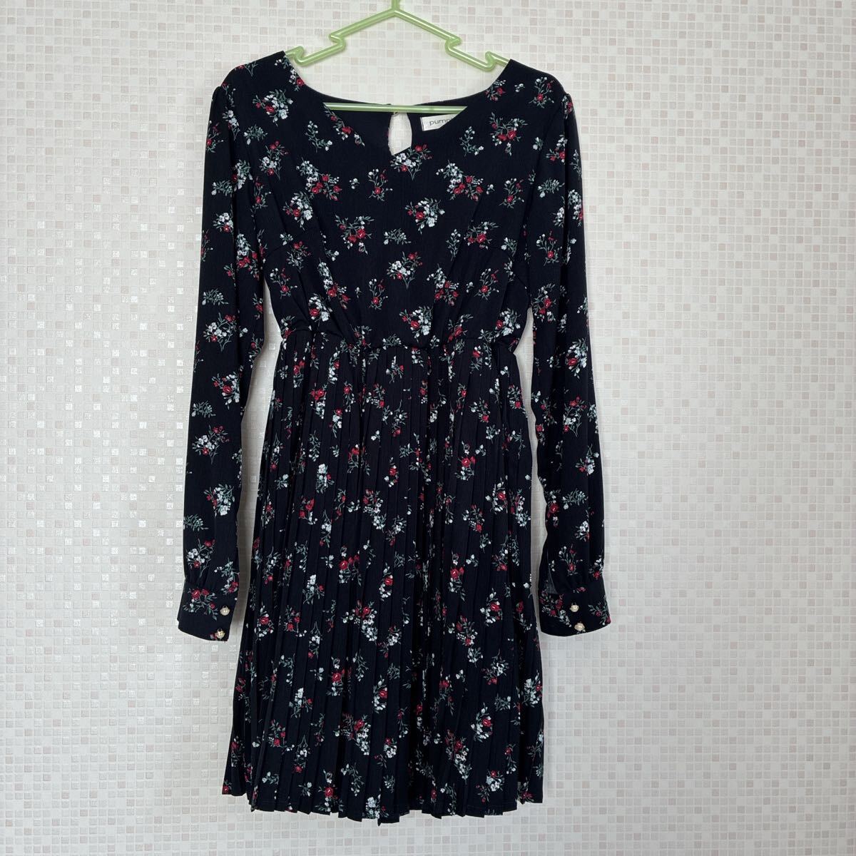 - ワンピース /花柄/長袖/濃紺/Mサイズ
