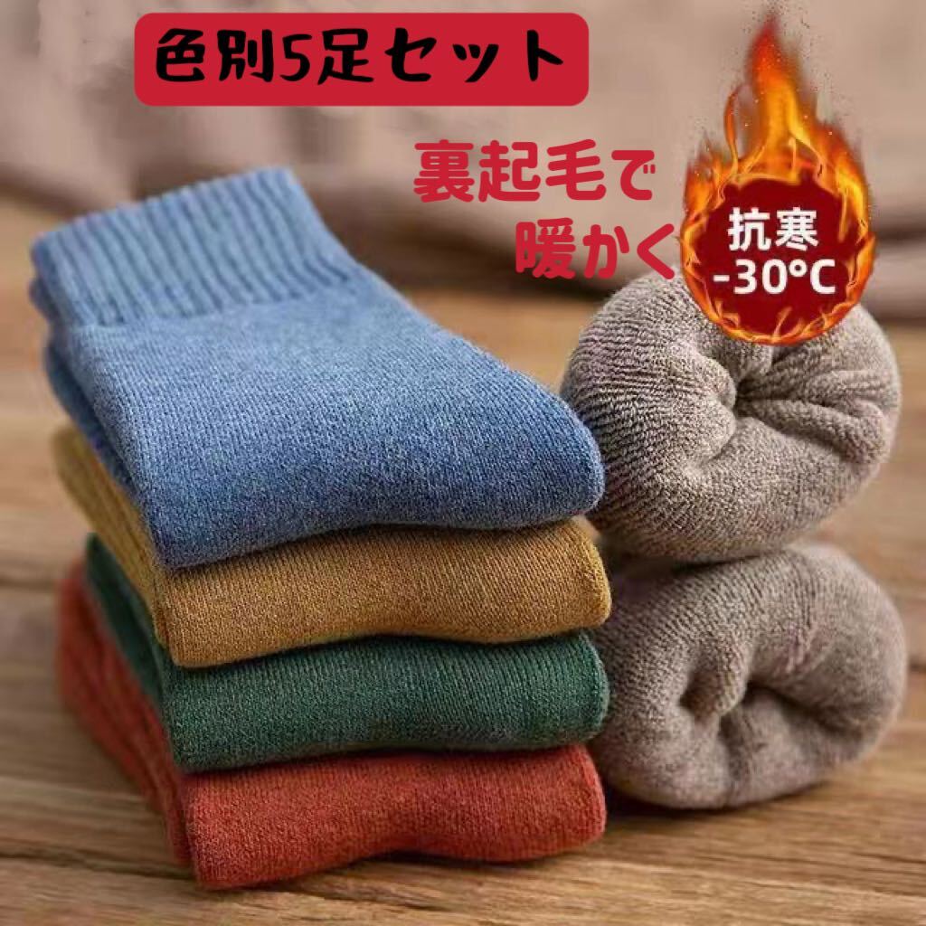 - 新品 冷え性対策 無地レディースソックス 冬 婦人5足セット 厚手スニーカークルー丈暖かく裏パイル 女性靴下 まとめ売り