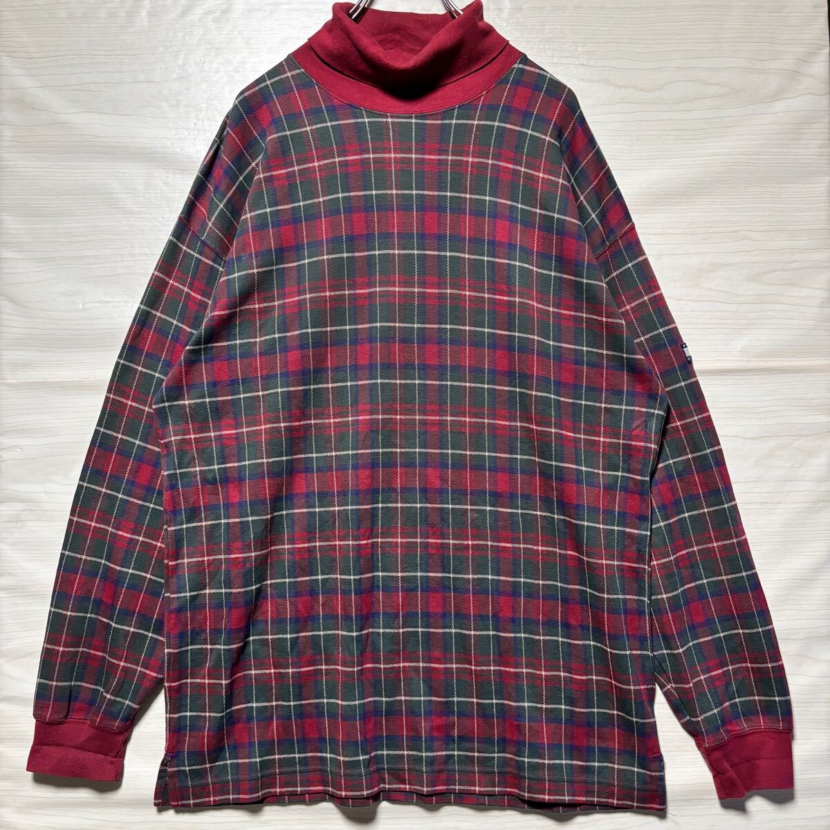 > TOMMY HILFIGER トミーフィルフィガー ロンT長袖Tシャツ長袖カットソー タートルネック サイズL チェック コットン メンズ トップス (31)