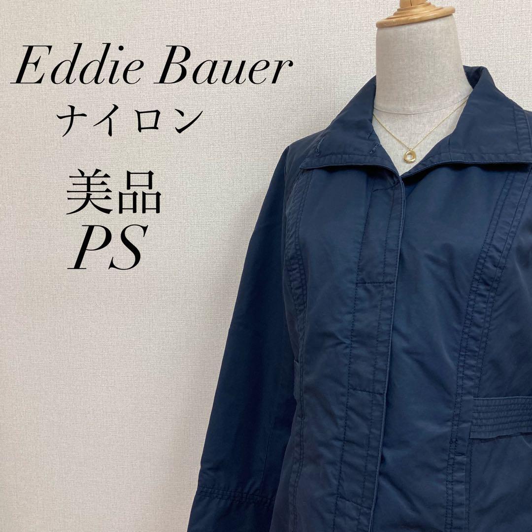 - T 美品 エディーバウアー Eddie Bauer アウトドア ナイロンミリタリージャケット ミドル ボタン ネイビー PS