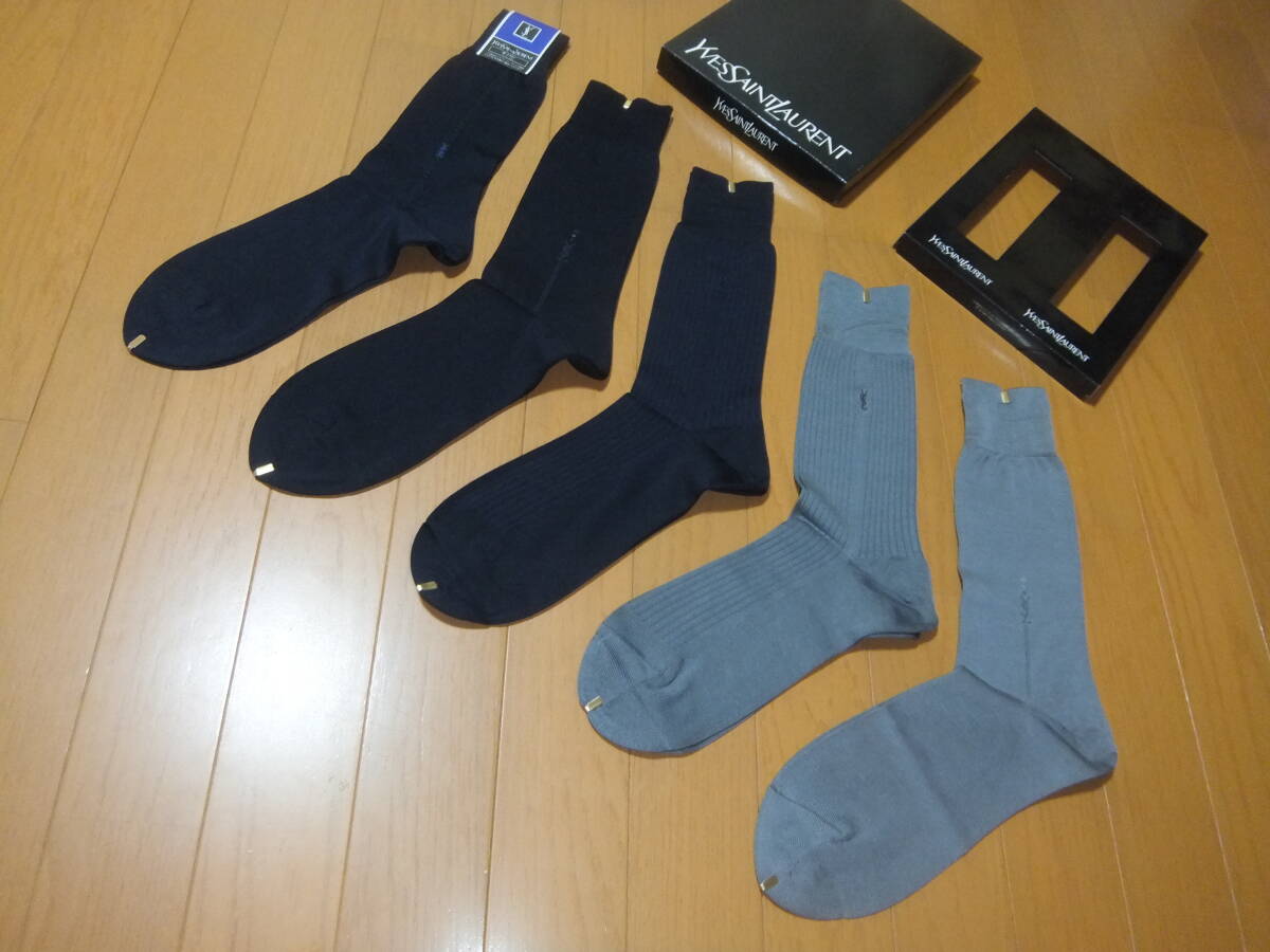 > 送料無料 未使用◎Yves Saint Laurent イヴサンローラン YSL 両面ロゴ刺繍 ビジネス靴下 5足セット 25cm