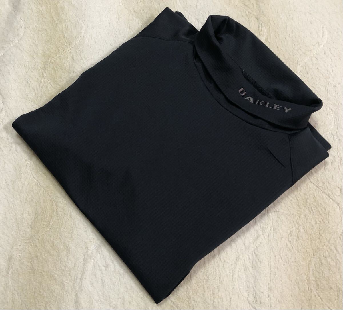 > ☆OAKLEY☆オークリー モック 長袖 Tシャツ L 黒系 ハイネック ストレッチ トレーニング ゴルフ
