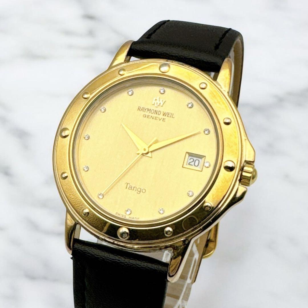 - 稼働品 RAYMONDO WEIL レイモンドウィル タンゴ 12Pダイヤ デイト ゴールド文字盤 腕時計 メンズウォッチ クオーツ