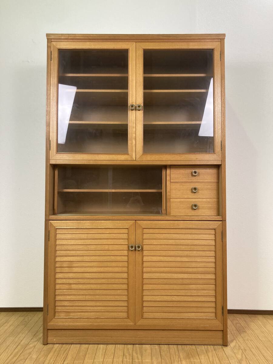 - ★昭和レトロ★ ヴィンテージ ガラス扉 180 105 大容量 キャビネット 食器棚 水屋 激安 格安 書棚 ブックシェルフ 大阪 引き取り可 レトロ