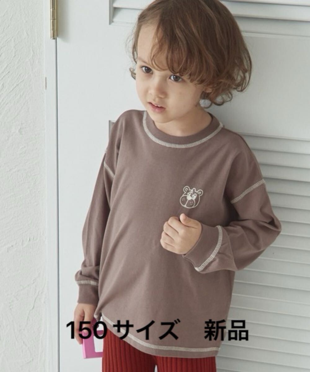 - こども服 PAIR MANON 配色ステッチプリントTブラウン150★ゆうパケット配送可能★新品14