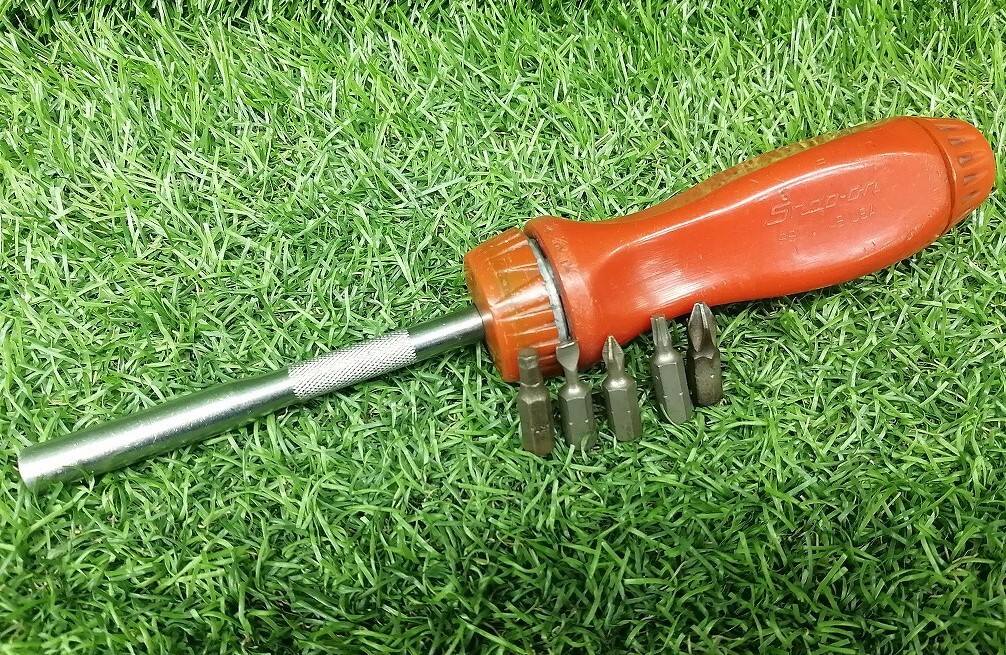 - 中古品 SNAP-ON スナップオン 1/4 ハードグリップ ラチェットドライバー 赤 + ビット5本 SSDMR4B
