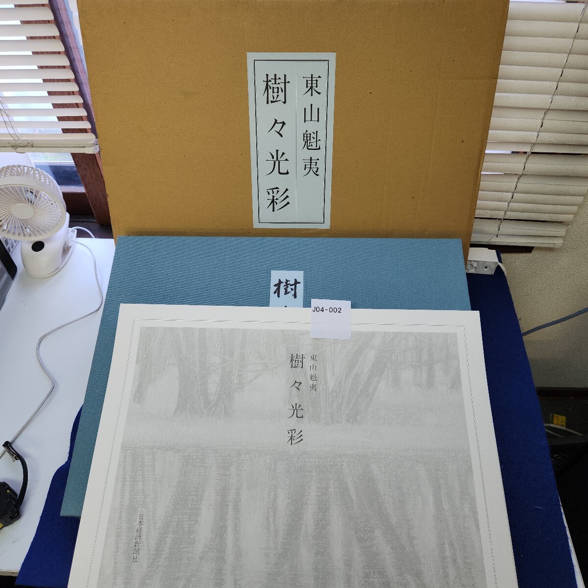 - J04-002 東山魁夷 樹々光彩 日本経済新聞社 輸送箱に破れ、傷みあり