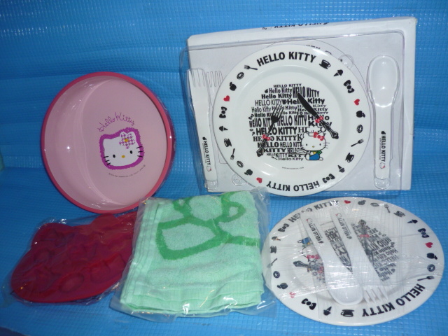 > Eレア品★未使用品★1997年ハローキティ お菓子入れ(容器)と食器プレートセットx2組他5点
