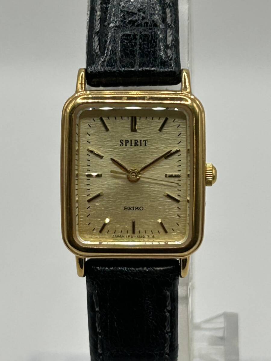 - ◎【腕時計】SEIKO spirits 1F21-5B30 クォーツ式 セイコー quartz 電池式 文字盤 四角 スクエア シンプルデザイン 金