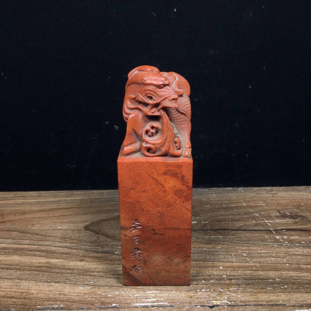 - 『館蔵珍品 寿山石 細密彫 龍印章 印鑒』文房具 書道品 貴重物品 収蔵品 中国古美術 時代物 古董品