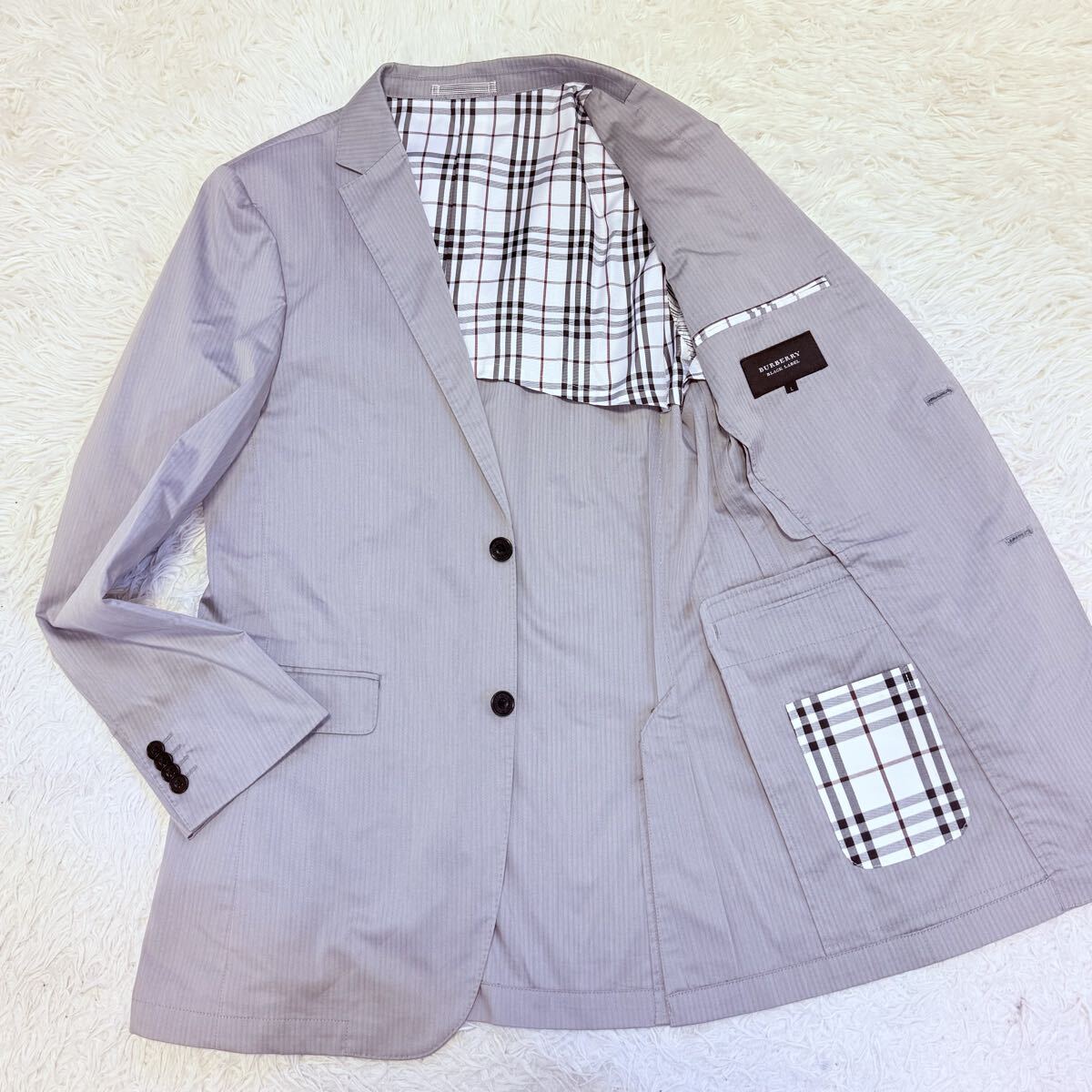 - 【美品/L】バーバリーブラックレーベル BURBERRY BLACK LABEL テーラードジャケット グレー ストライプ ノバチェック