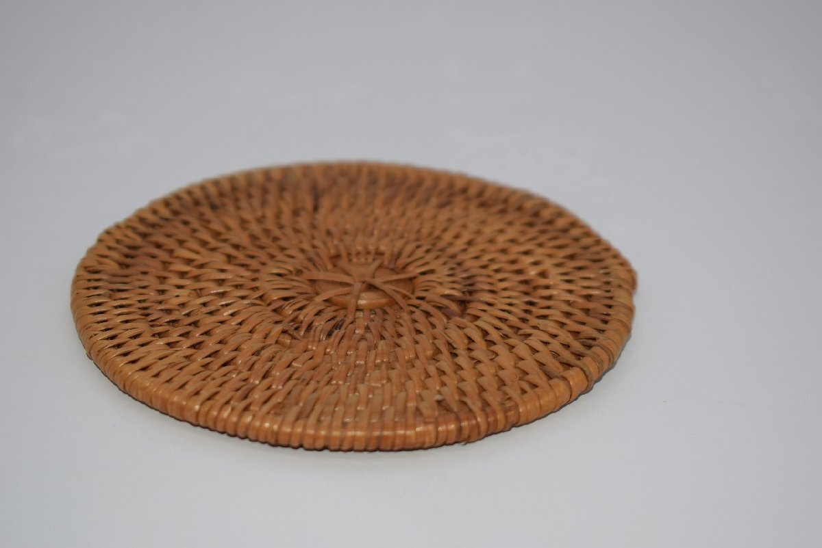 - 煎茶道具 籐組 瓶敷 白 小 径9.8cm 34-9125