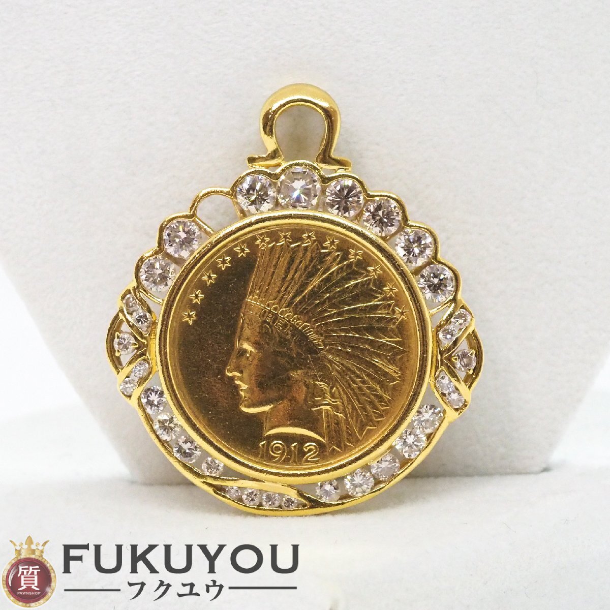 > K21.6/18K インディアンコイン 1912年 ペンダントトップ ネックレス メレダイヤモンド 4.07ct 28.4g アクセサリー