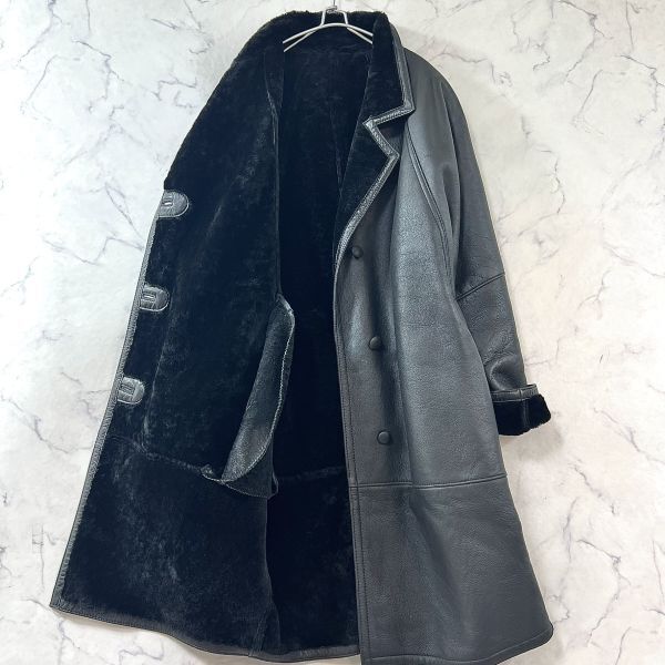 > 美品 本革 リアルムートンコート リアルファー レザージャケット レディース XL~3L相当 大きいサイズ 黒 ブラック B1616