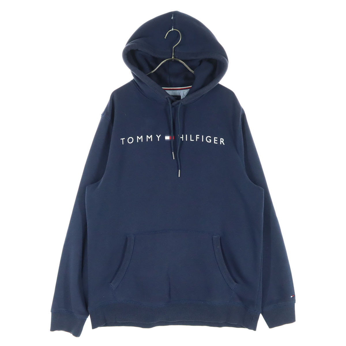 TOMMY HILFIGER トミーヒルフィガー プリント 長袖 裏起毛 パーカー XL ネイビー メンズ拍卖