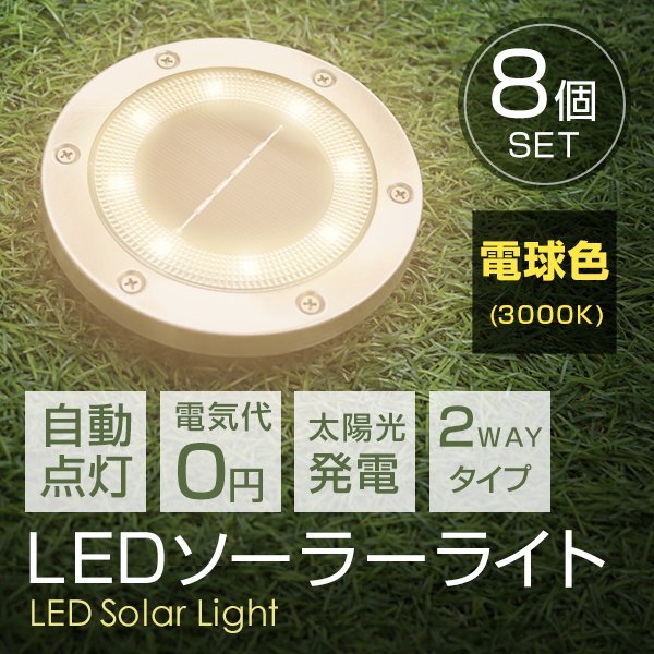 > 【8個セット】新品未使用 LED ソーラーライト 電球色 2WAY ガーデン ライト 埋め込み 置き型 防水 玄関 庭 駐車場 誘導灯 太陽光充電